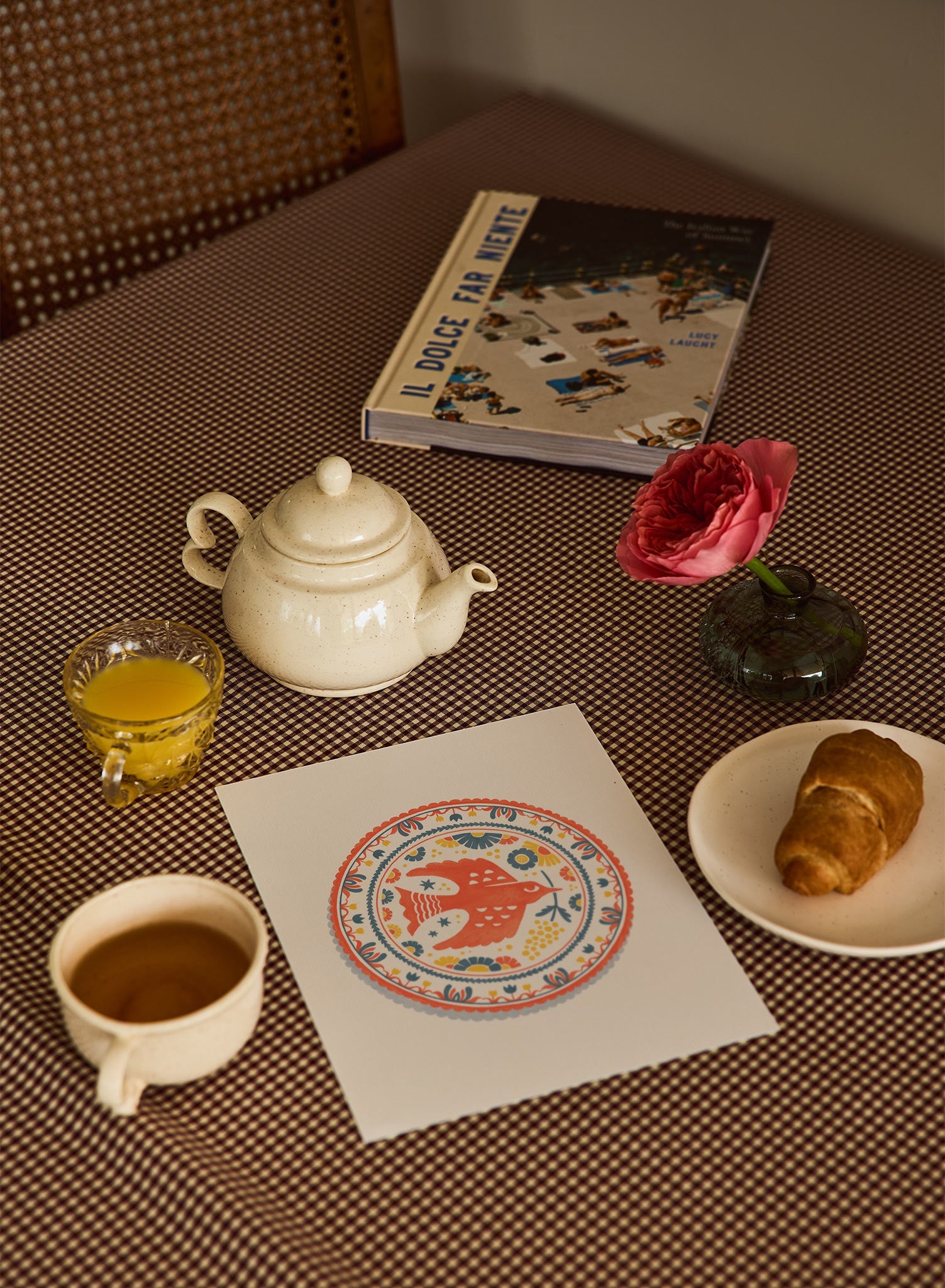 Perfect for a living room or study, this print pairs beautifully with rustic wood furnishings or vintage-inspired decor. Consider placing it above a mantelpiece or as part of a gallery wall to draw attention to its unique design. Complementary items like woven textiles or ceramic vases can enhance its folk art appeal, creating a cozy and inviting atmosphere.